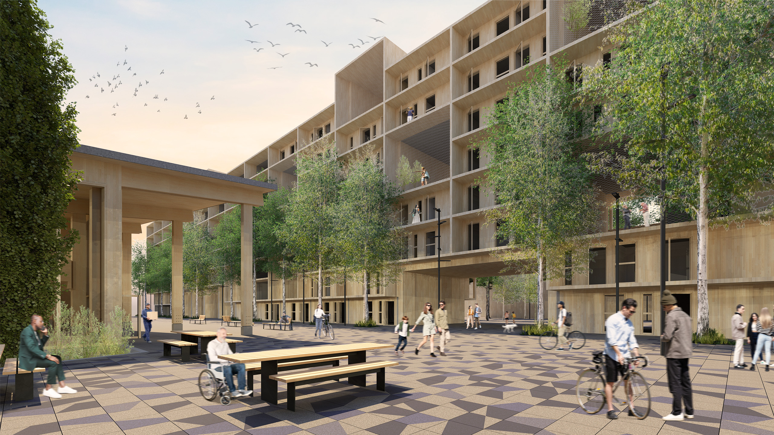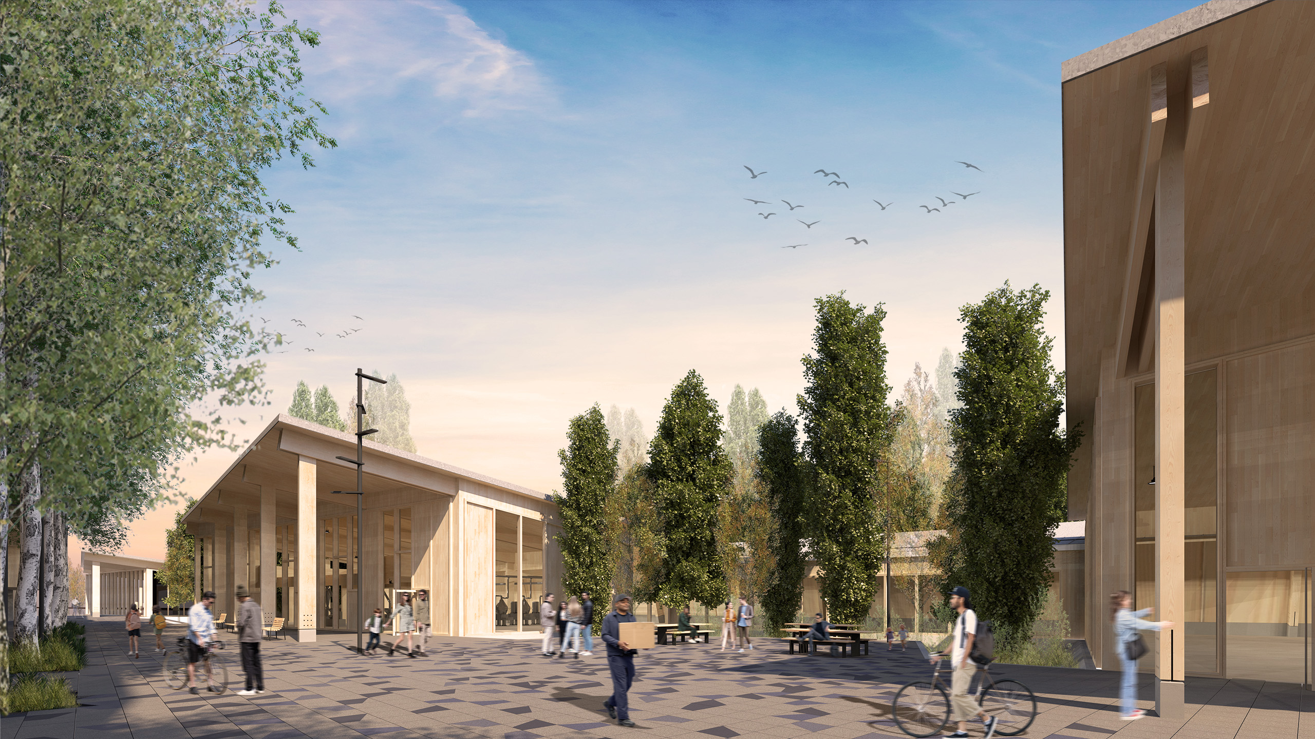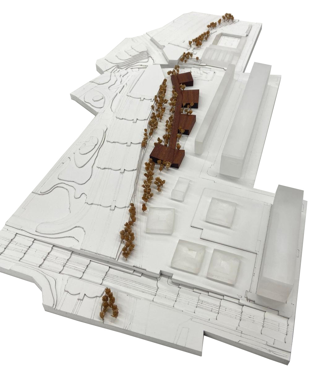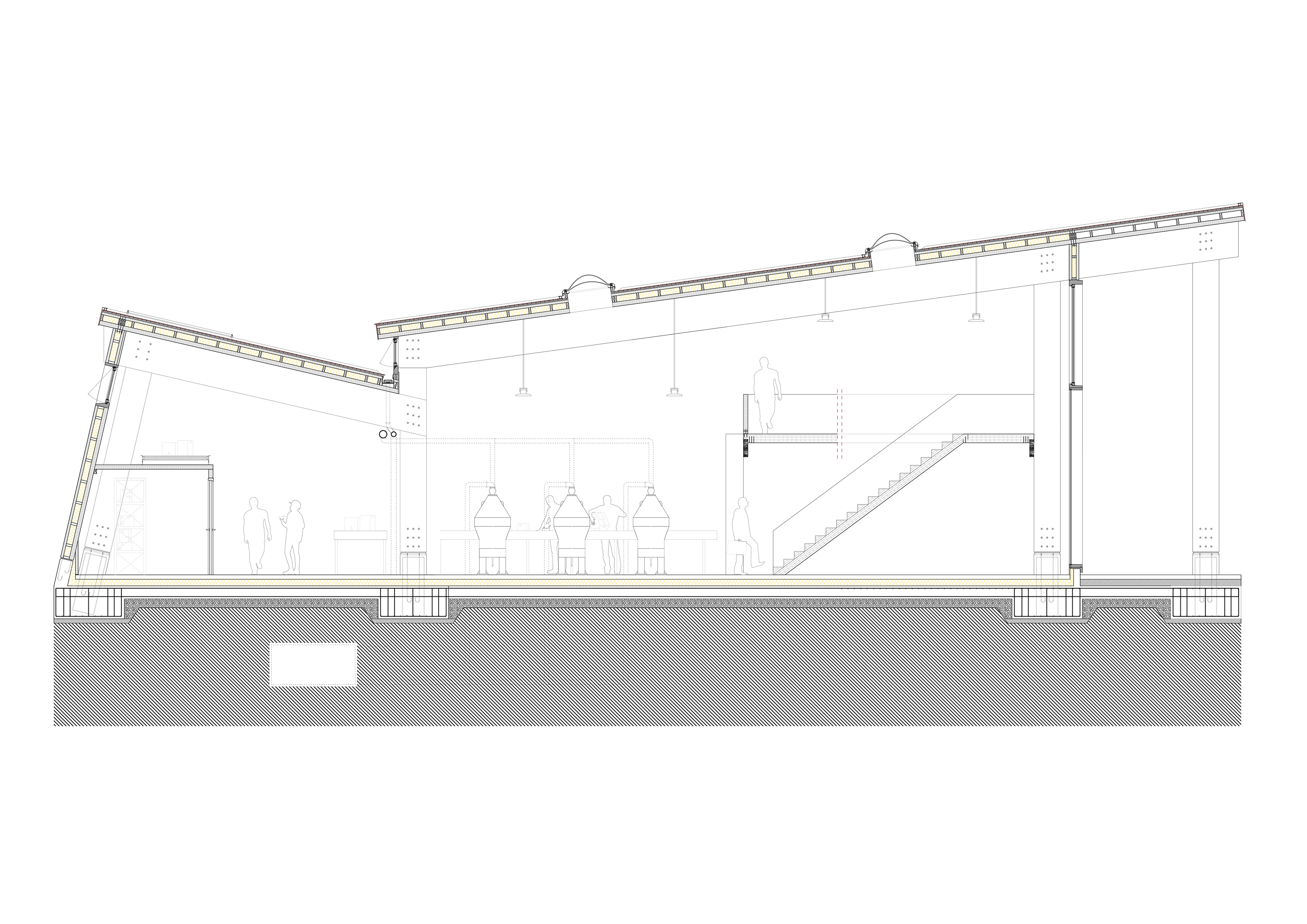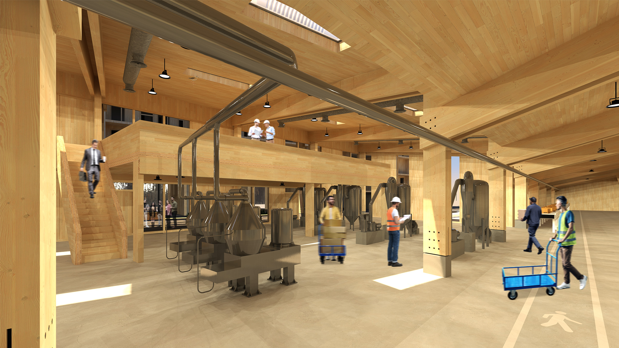 Another significant aspect of the project involved addressing the long, narrow space between the Estrella residential block, the train tracks, and the highway. A new production facility was strategically positioned in this area to serve as a buffer from the noise and activity of the train and highway. The design of Cubozoa factory, featuring a long horizontal core connecting multiple production hubs, created several interconnected natural open spaces. By integrating the first two floors of the residential blocks, they became part of the same open environment.