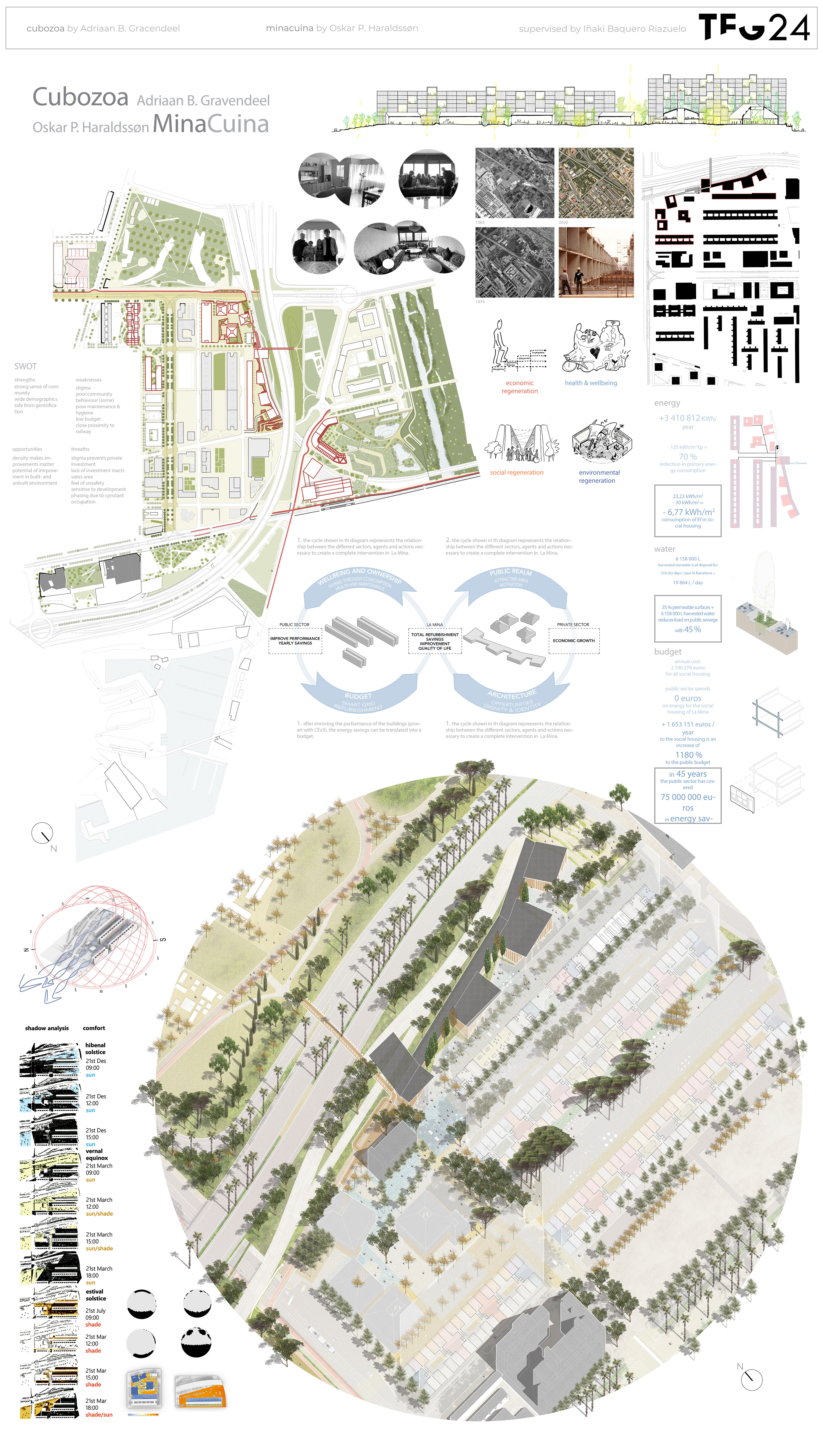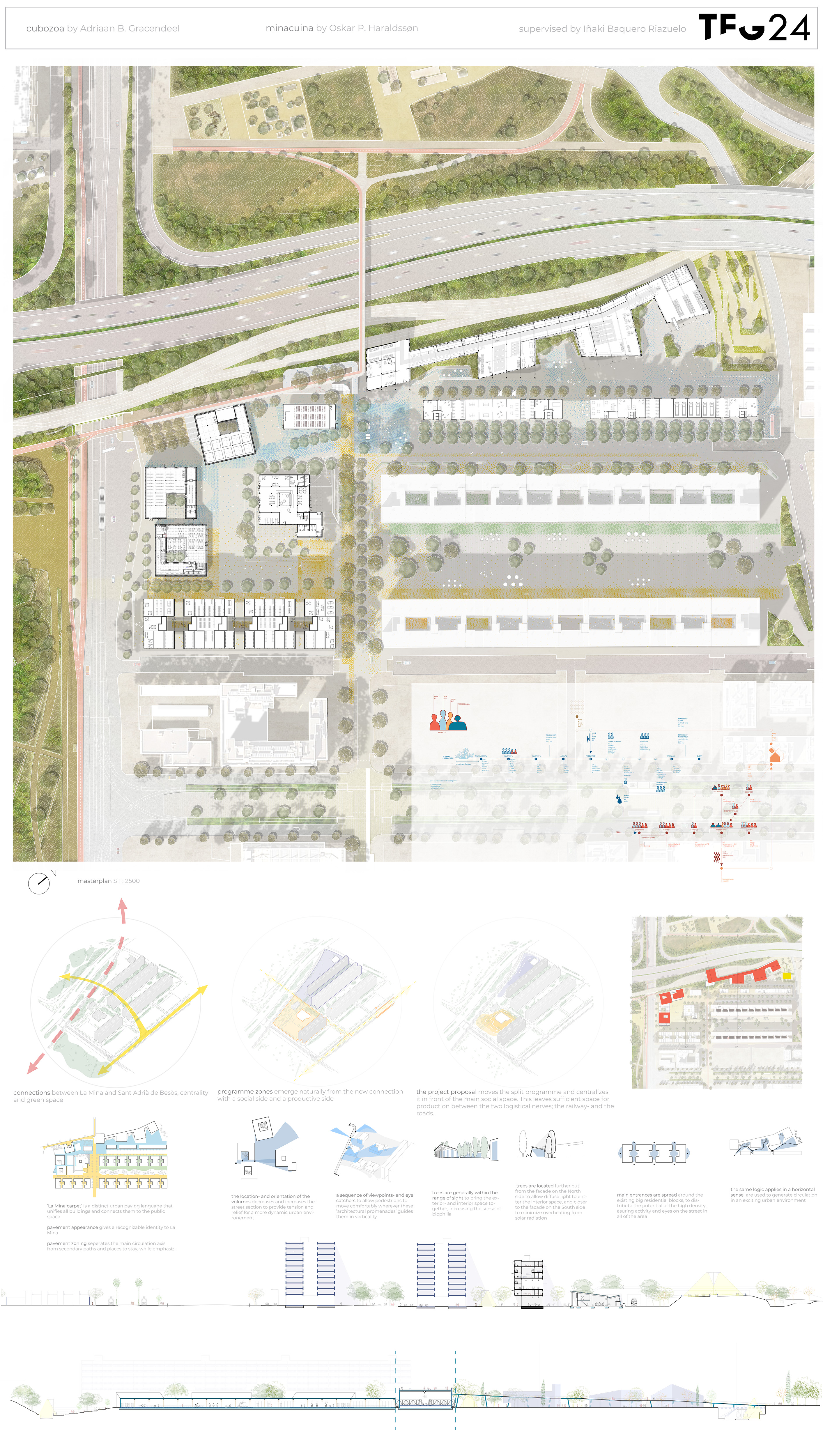 Located as the last neighboring area to Barcelona within the northeastern boundary of the Ronda, La Mina is a densely populated neighborhood that is home to over 10,000 individuals from diverse backgrounds. Despite its strong stigma, La Mina harbors a community with a robust social culture. However, years of neglect have left their mark on the housing blocks and public spaces, resulting in unhygienic situations and the deterioration of shared areas.